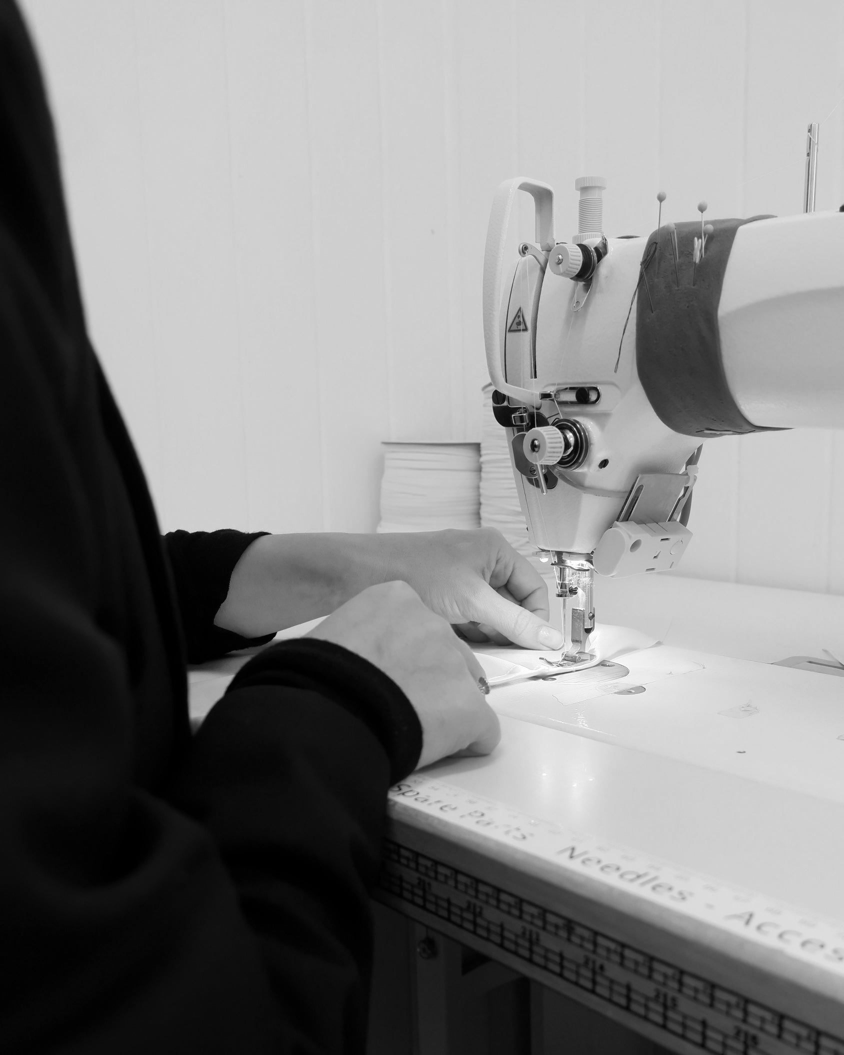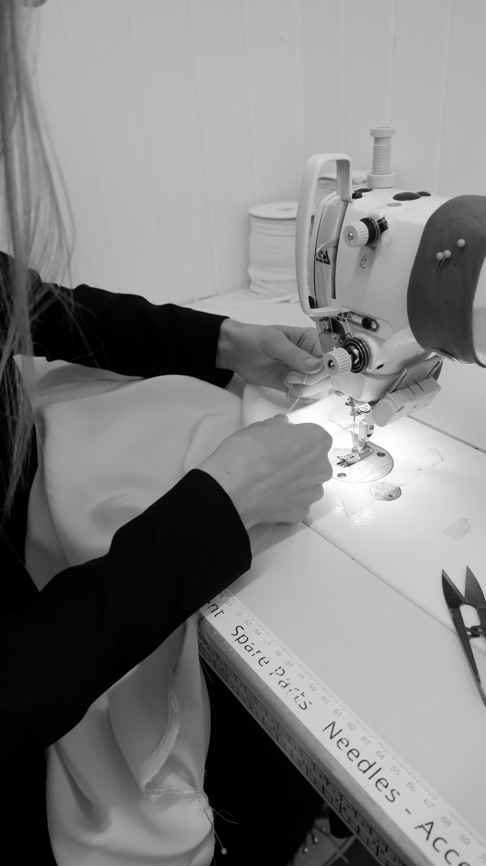 By maintaining a large proportion of production in-house, Dominique has the ability to produce small runs per style that would usually not meet factory production minimums. As only a small number of garments per style are produced from the outset, Dominique moves to a ‘made to order’ model once sold through initial stock levels, leaving her with little to no stock at the end of season.