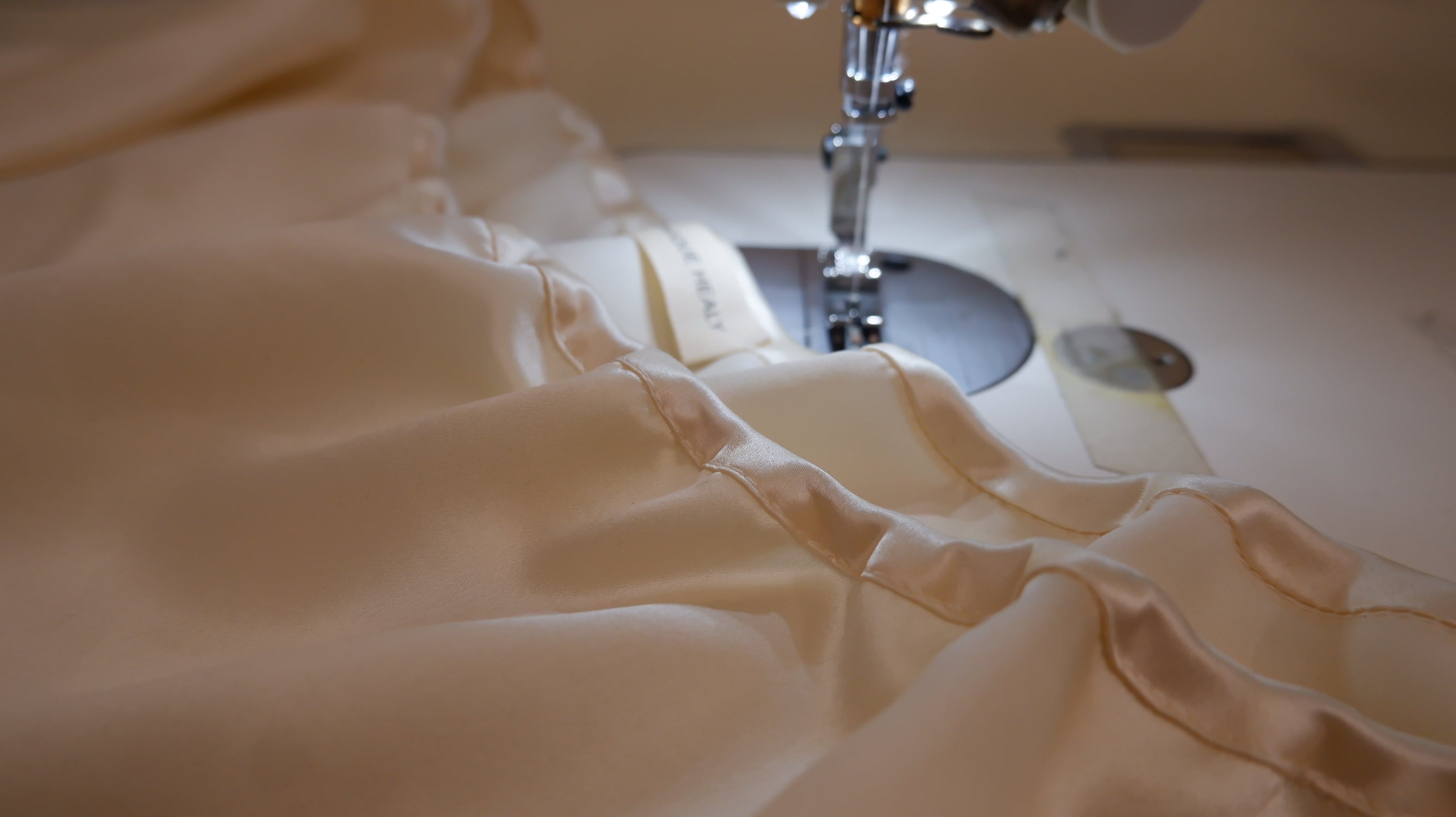 When sourcing materials, Dominique Healy predominately uses deadstock fabric sourced from makers and mills in Japan, Hong Kong, France, Italy, Australia and New Zealand. Deadstock fabrics are end-of-line, mills overruns, cancelled orders or designer excess and are typically deemed a waste product in the fashion industry, often ending up in landfill.