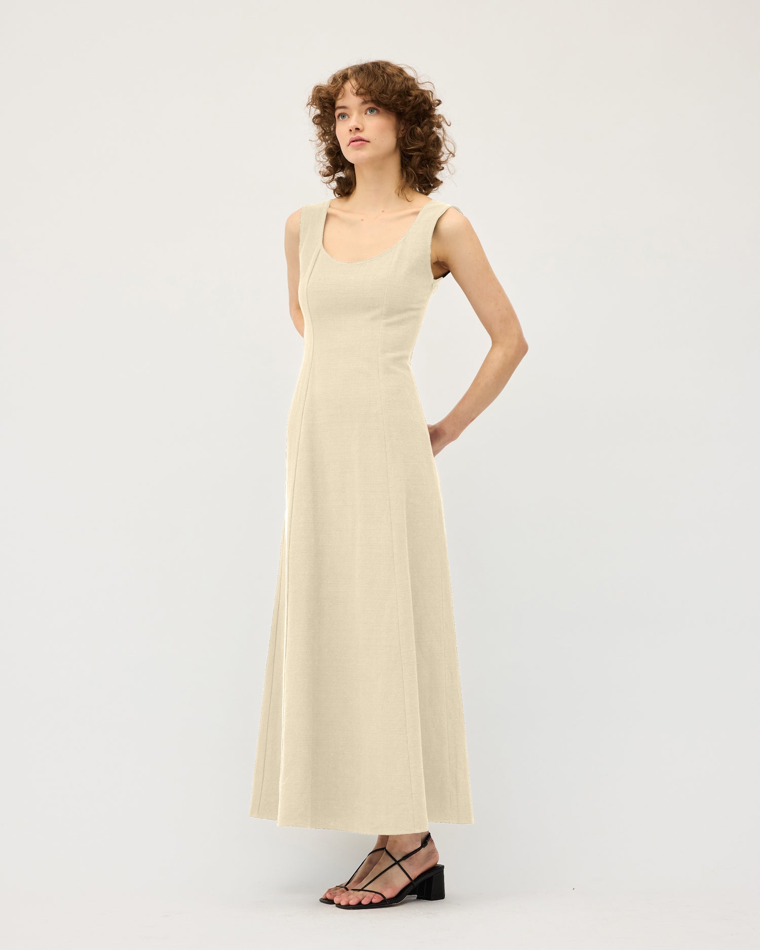 The Ada Dress is a clean tailored dress fitting close to the body then into an a-line skirt. Featuring a scoop neckline this classic shape will hold a place in your wardrobe for many years to come. A versatile piece, dress it up with a simple heel and jewellery or wear more casually with sandals for an elevated everyday look.