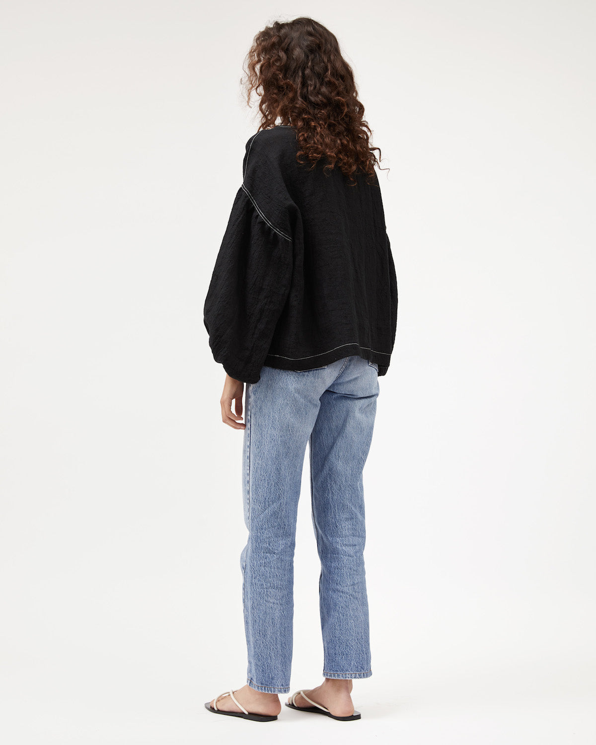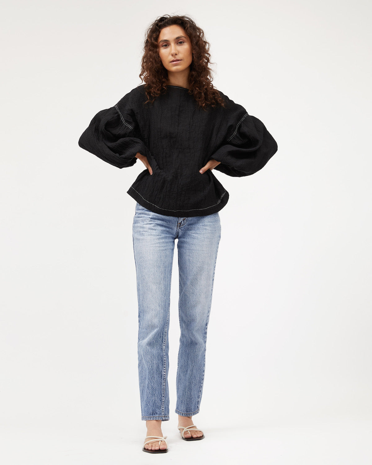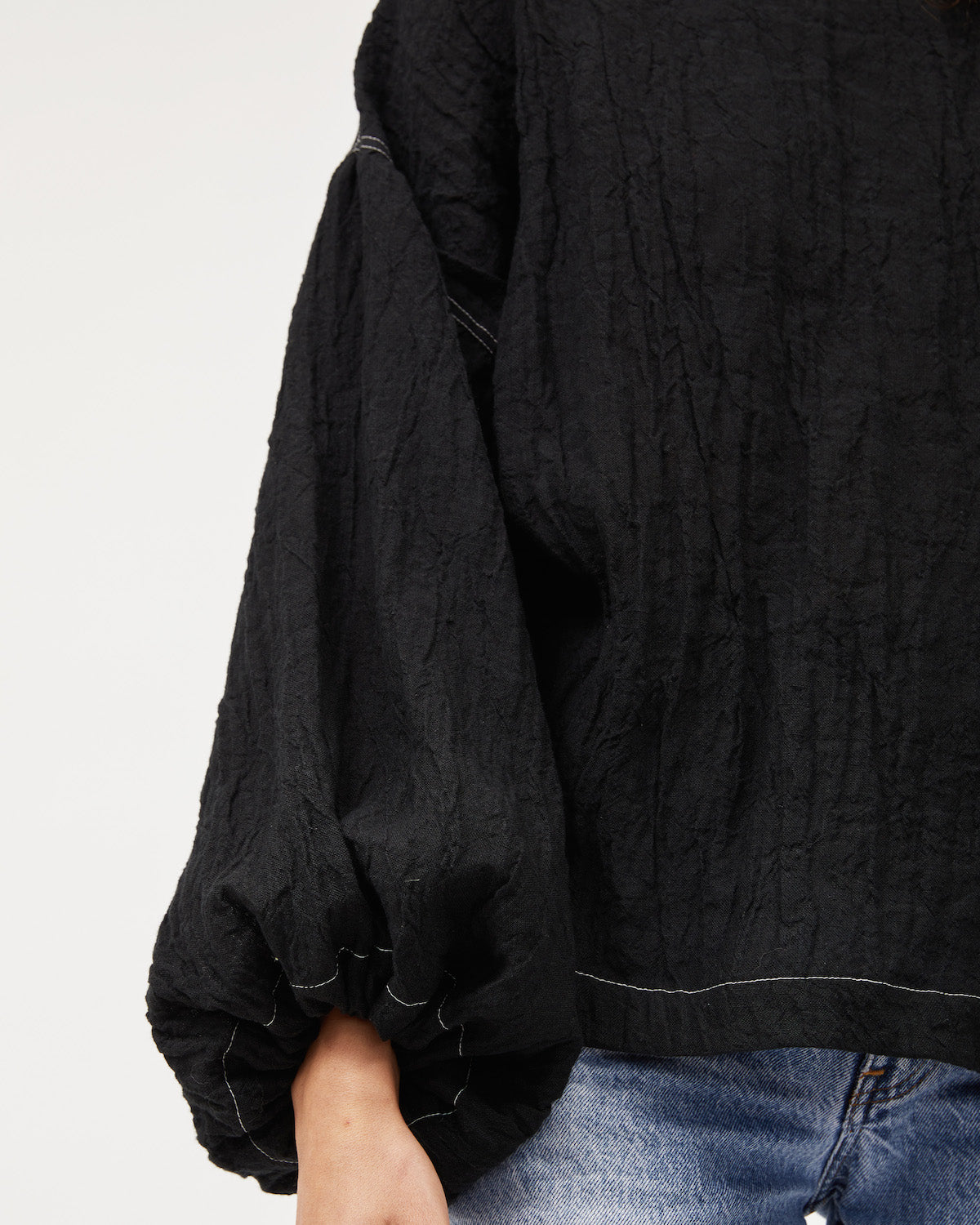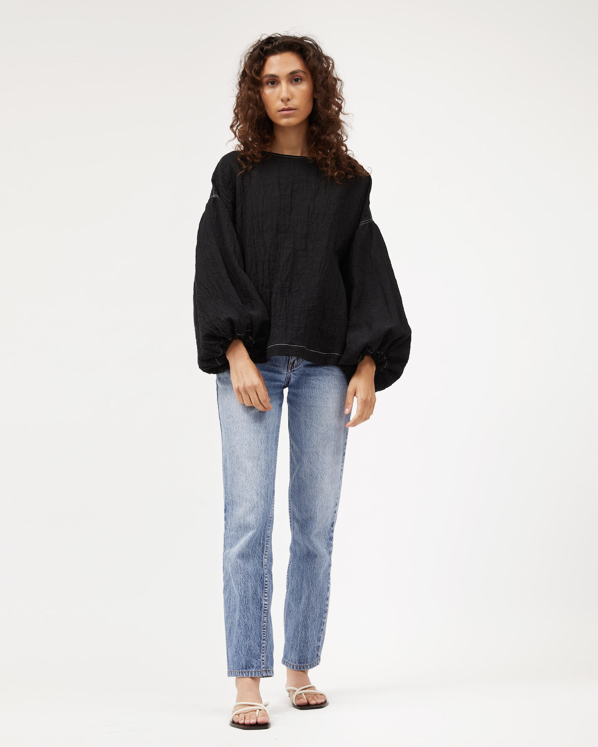 One of our DH classic shapes, the Bella Blouse features oversized sleeves and loose through the body. The sleeves can be pushed up, rolled or worn long as pictured. This style is designed to be oversized. Comfortable and easy to wear year round, it can be worn casually or dressed up with a pair pants and heels.