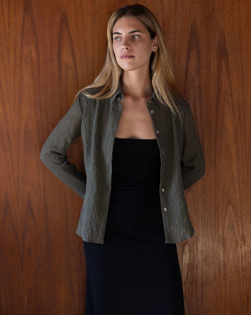 Ivy Shirt | Khaki Sheer Crinkle