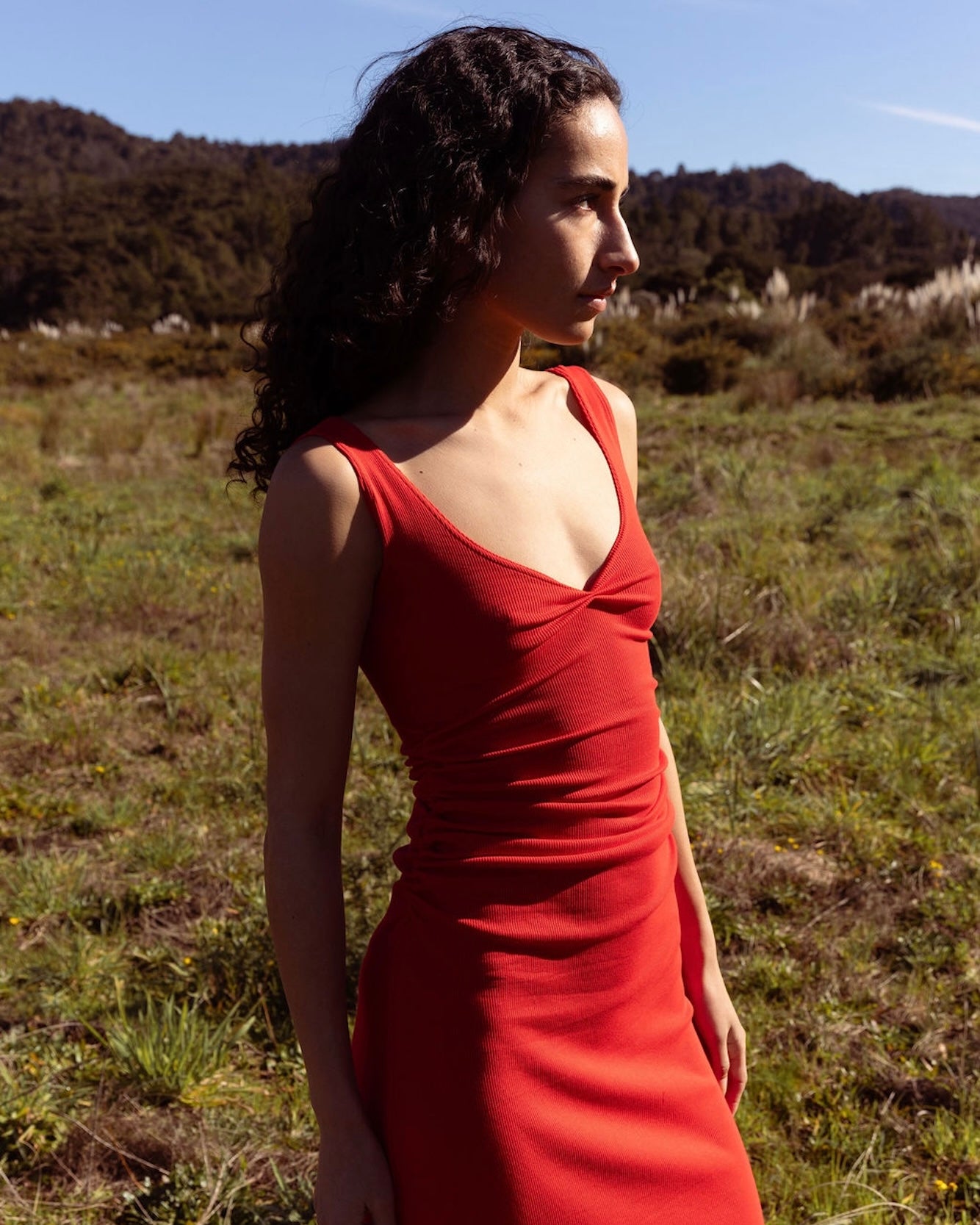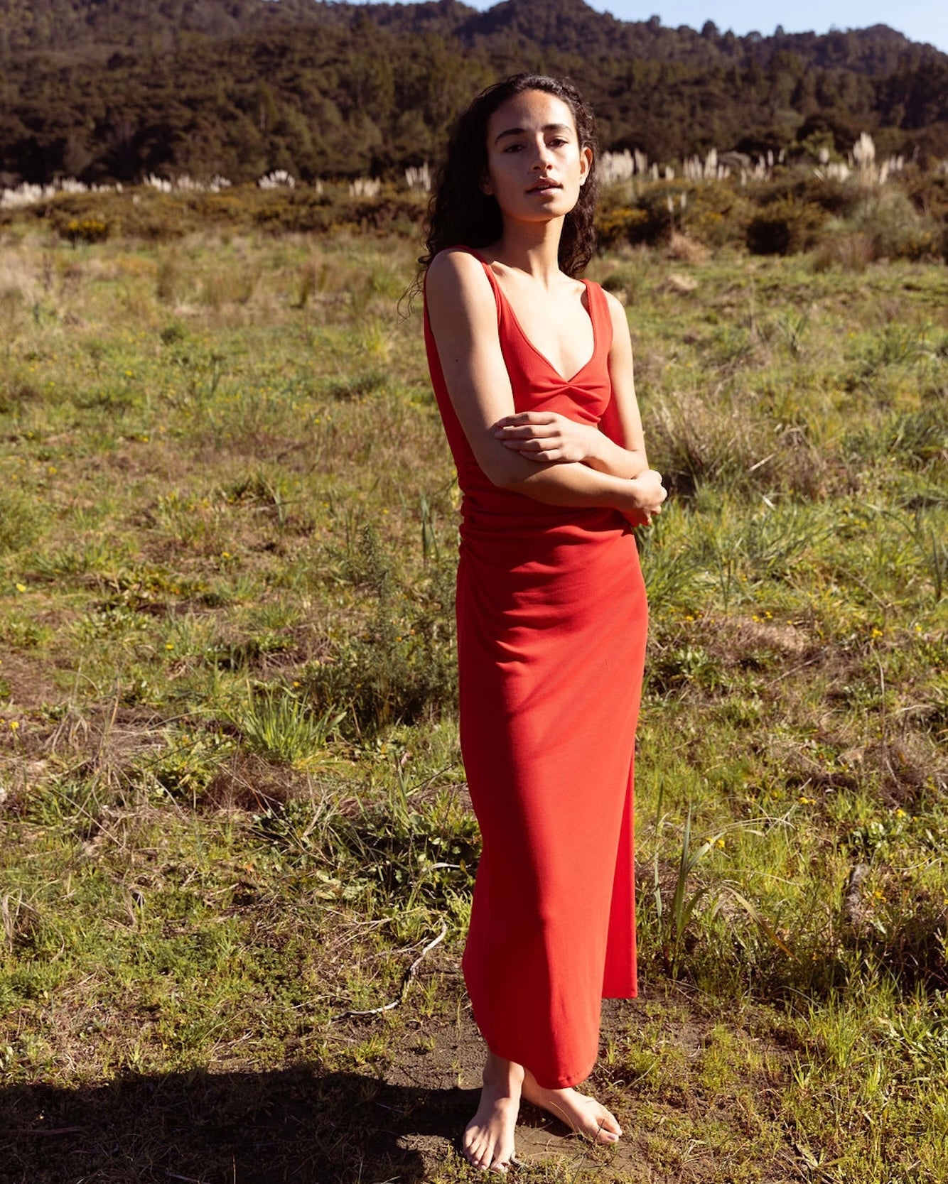 The Jill Dress is designed to be your go-to dress. Comfortable, clean and classic, featuring our scoop neckline with a tuck detail at the front. Features ruching down the sides, length is 7/8 sitting just above the ankle.