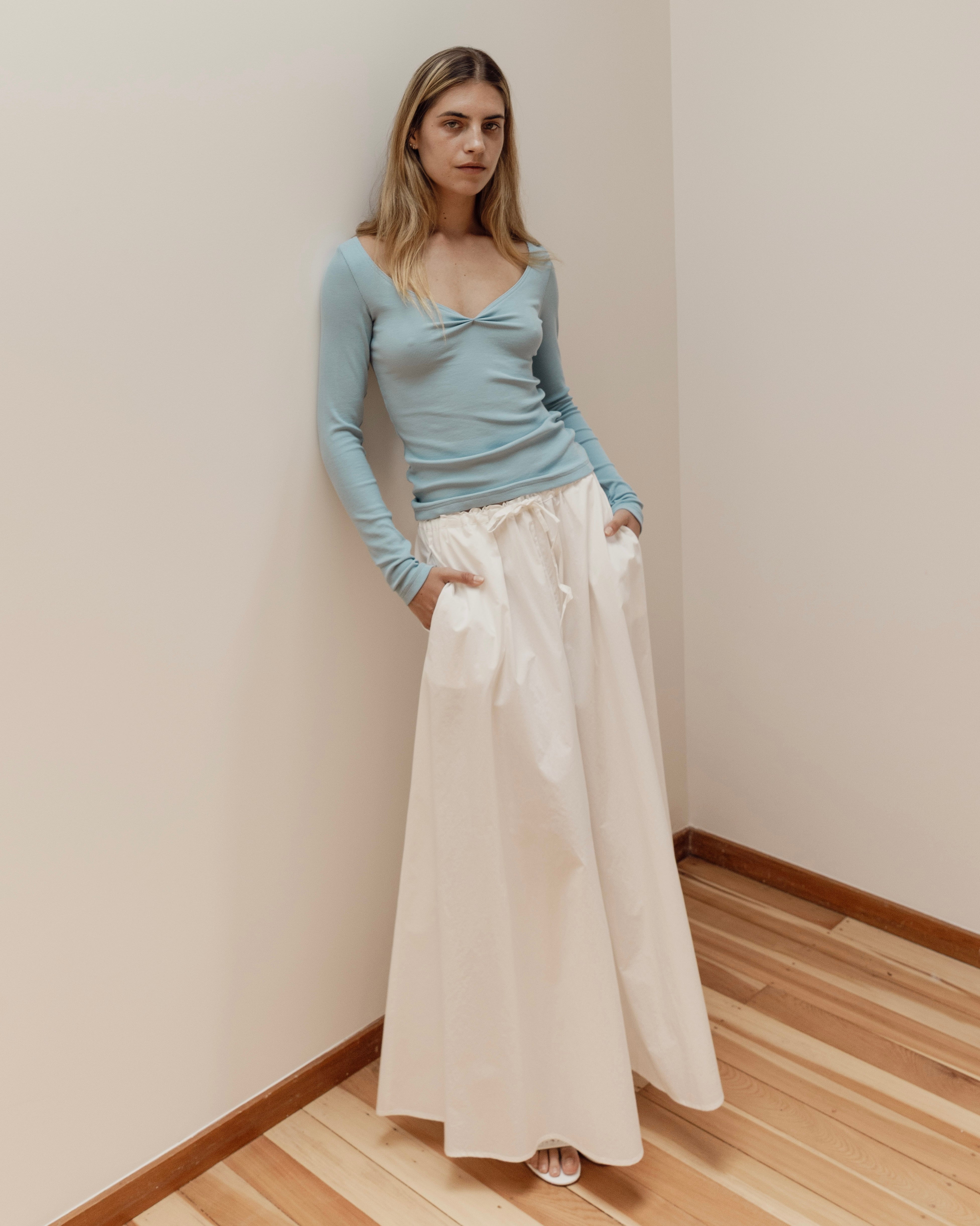 Featuring a close-fitting silhouette, this long sleeve style is finished with a soft tuck detail at the neckline, a subtle nod to our much-loved Jill Tank. The shape is simple and considered, making it an easy piece to wear on its own or layered through the seasons.