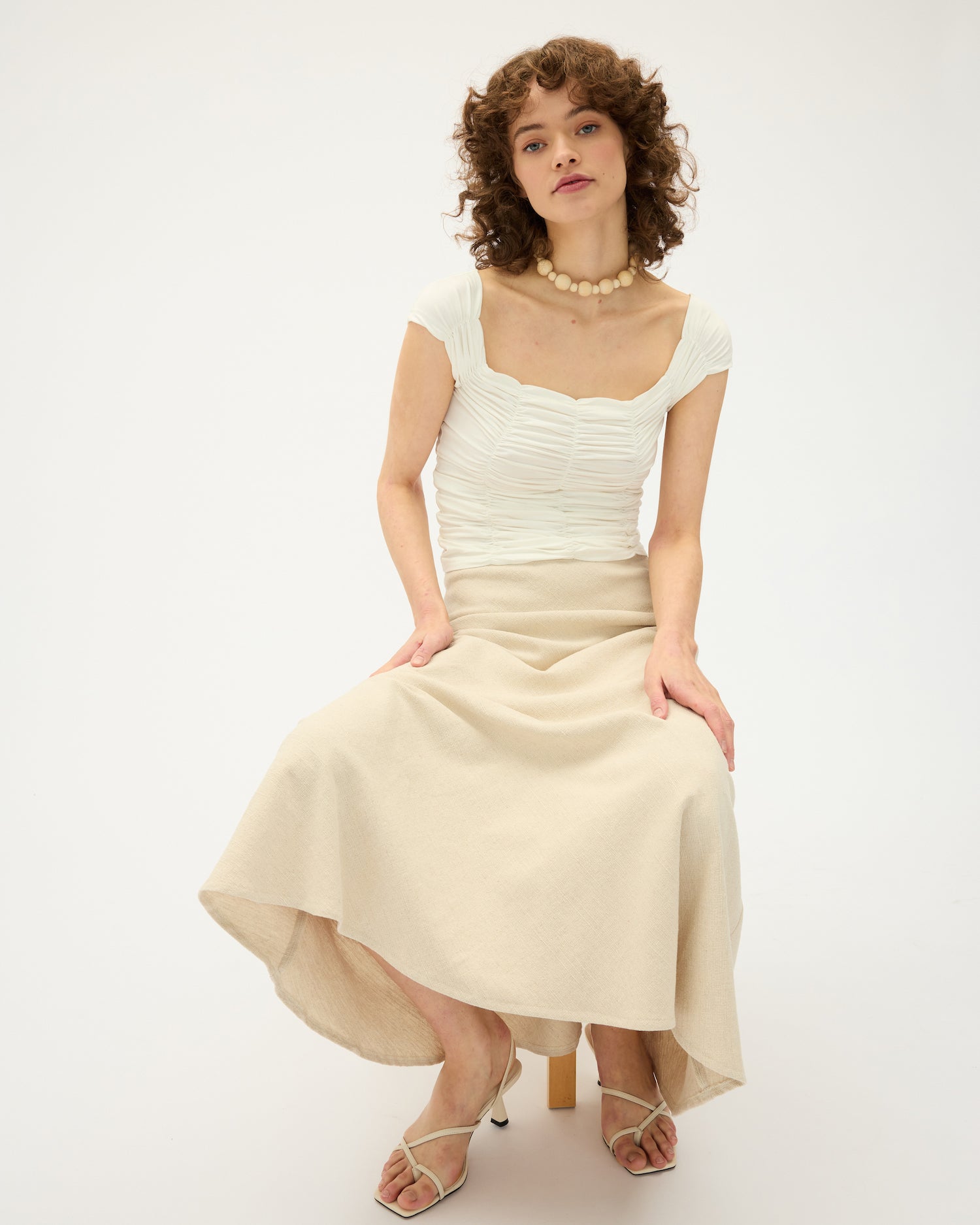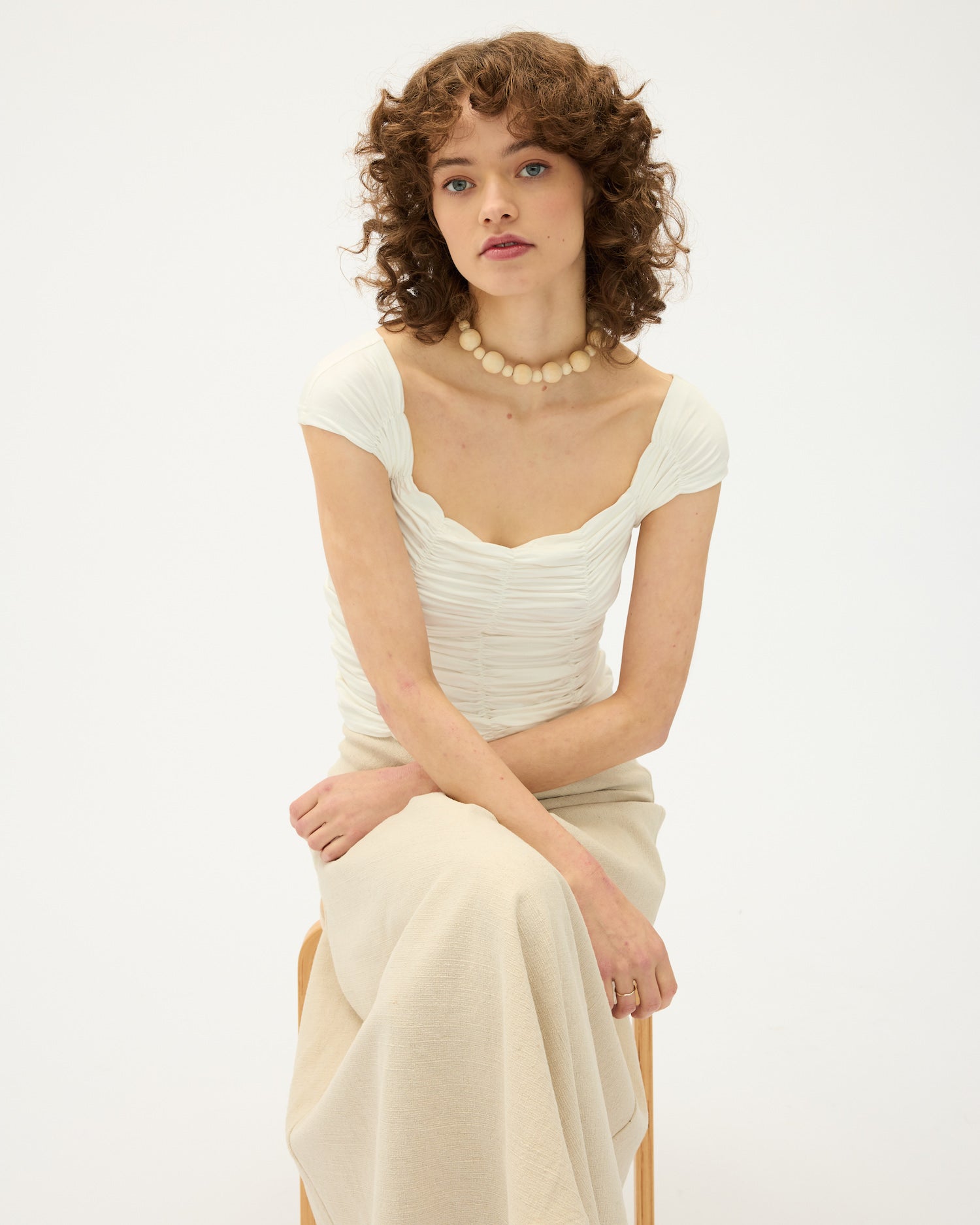 The Jolene Tee pairs effortlessly with the Pippa Pant, combining crisp structure and delicate accents for an elevated everyday style.