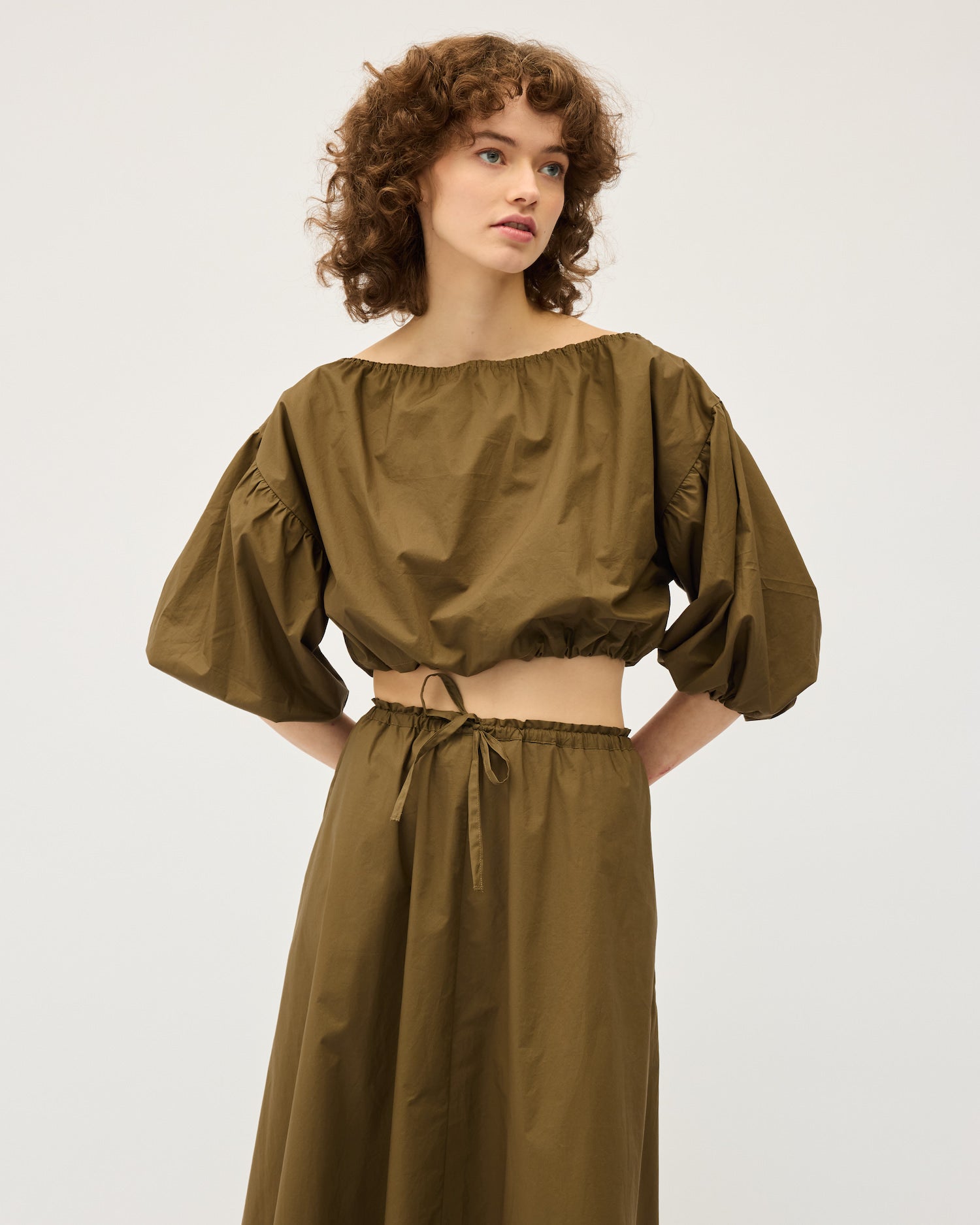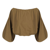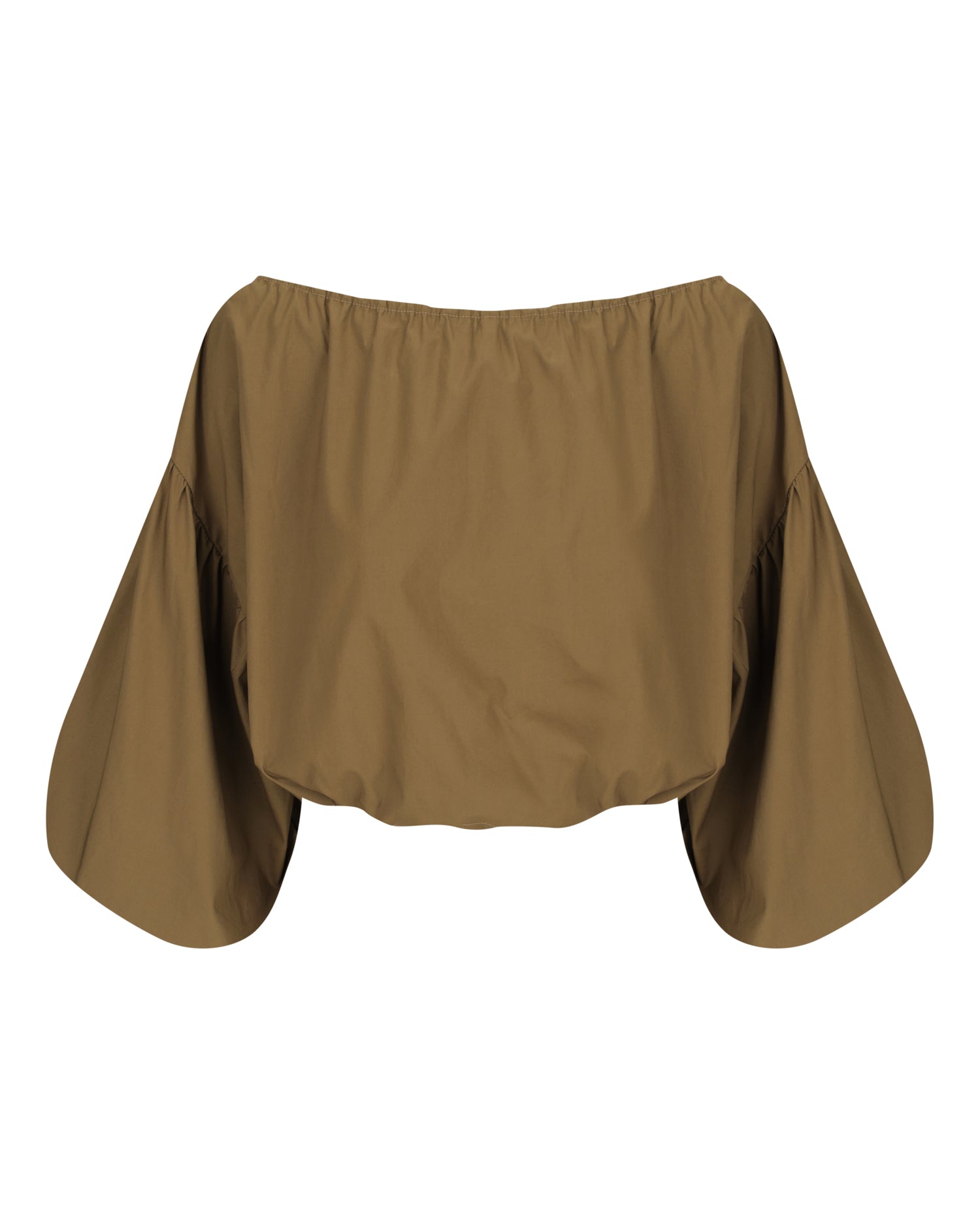 A slightly exaggerated version of our classic Louie Crop. Slightly more fullness through the body, featuring 3/4 full sleeves. Sits near the edge of the shoulders, can be pulled further down to sit off shoulders due to elastic in front and back.