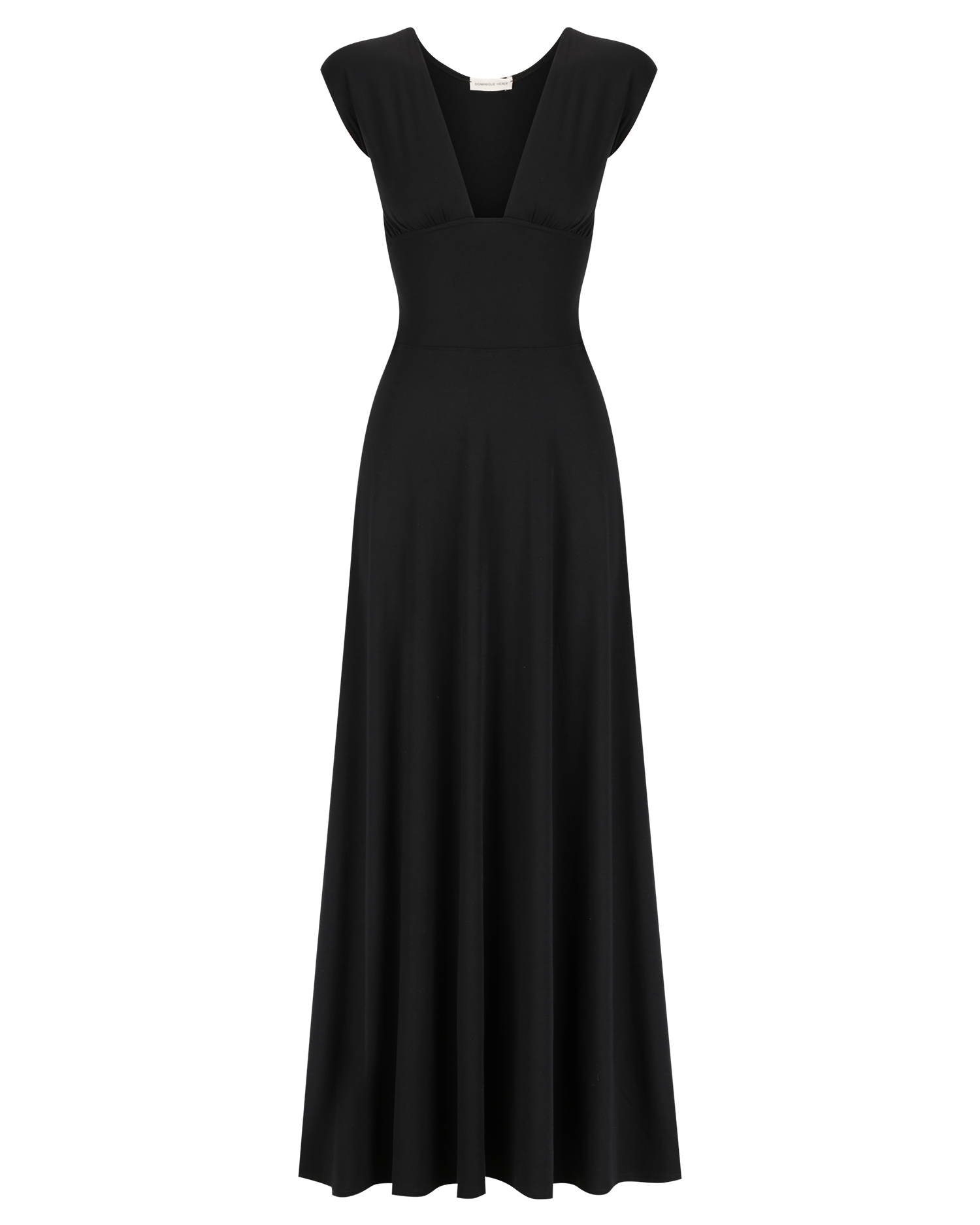 The Marilyn Dress is an elegant, timeless silhouette featuring a low, squared-off V neckline. Fitting close through the body before sweeping out into a full-length A-line skirt. Made using a premium cupro blend fabric, soft to the touch and with stretch for ease and comfort.