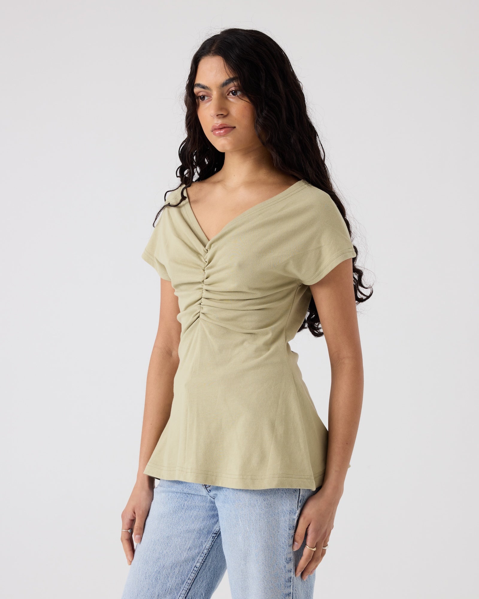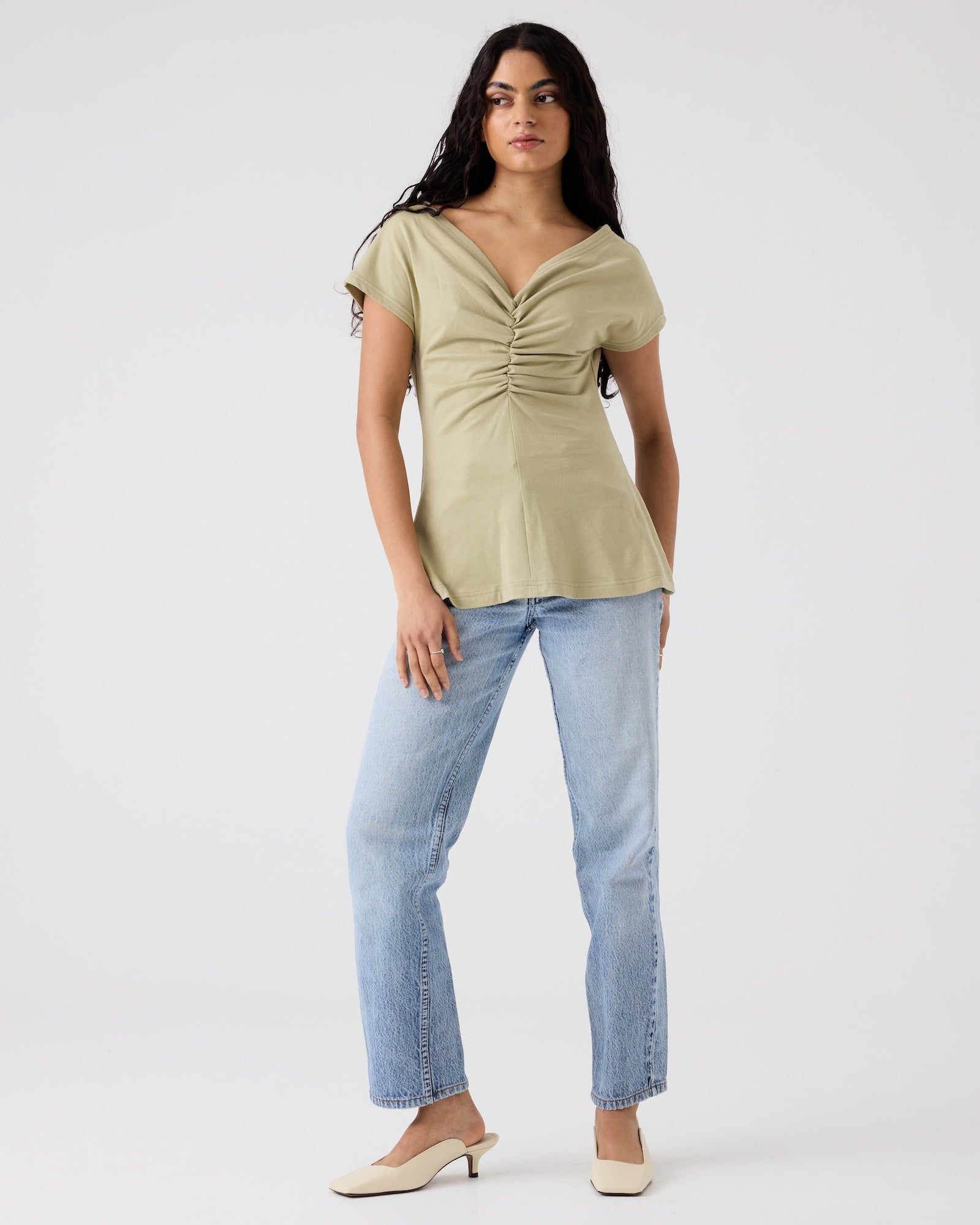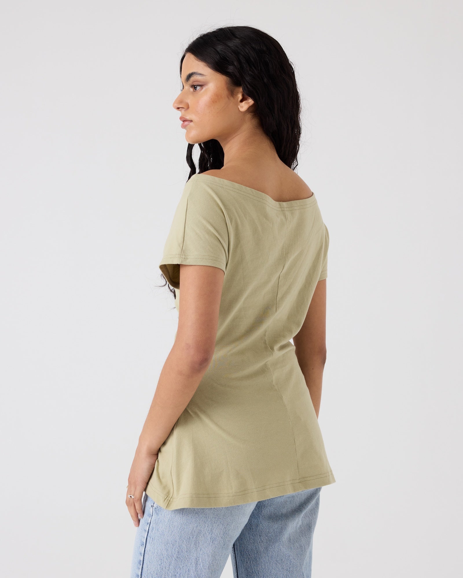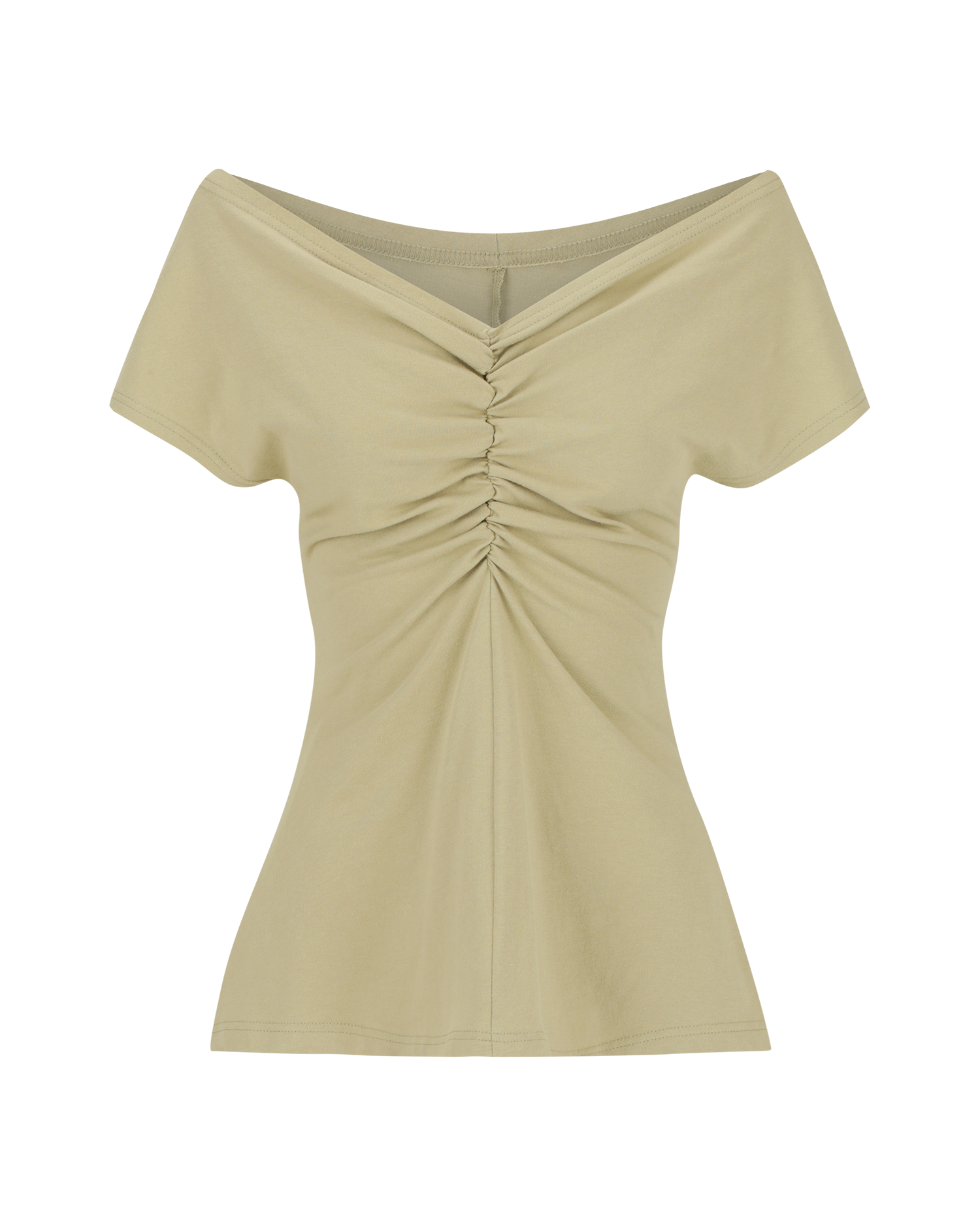This top was designed for those who love some of our off the shoulder styles like the Niveah but don't want it quite so fitted. This style sits right at the edge of the shoulders, featuring elasticated ruching down the centre front, skims in under the bust then sweeps out into an a-line shape. Pairs perfectly with denim and trousers.