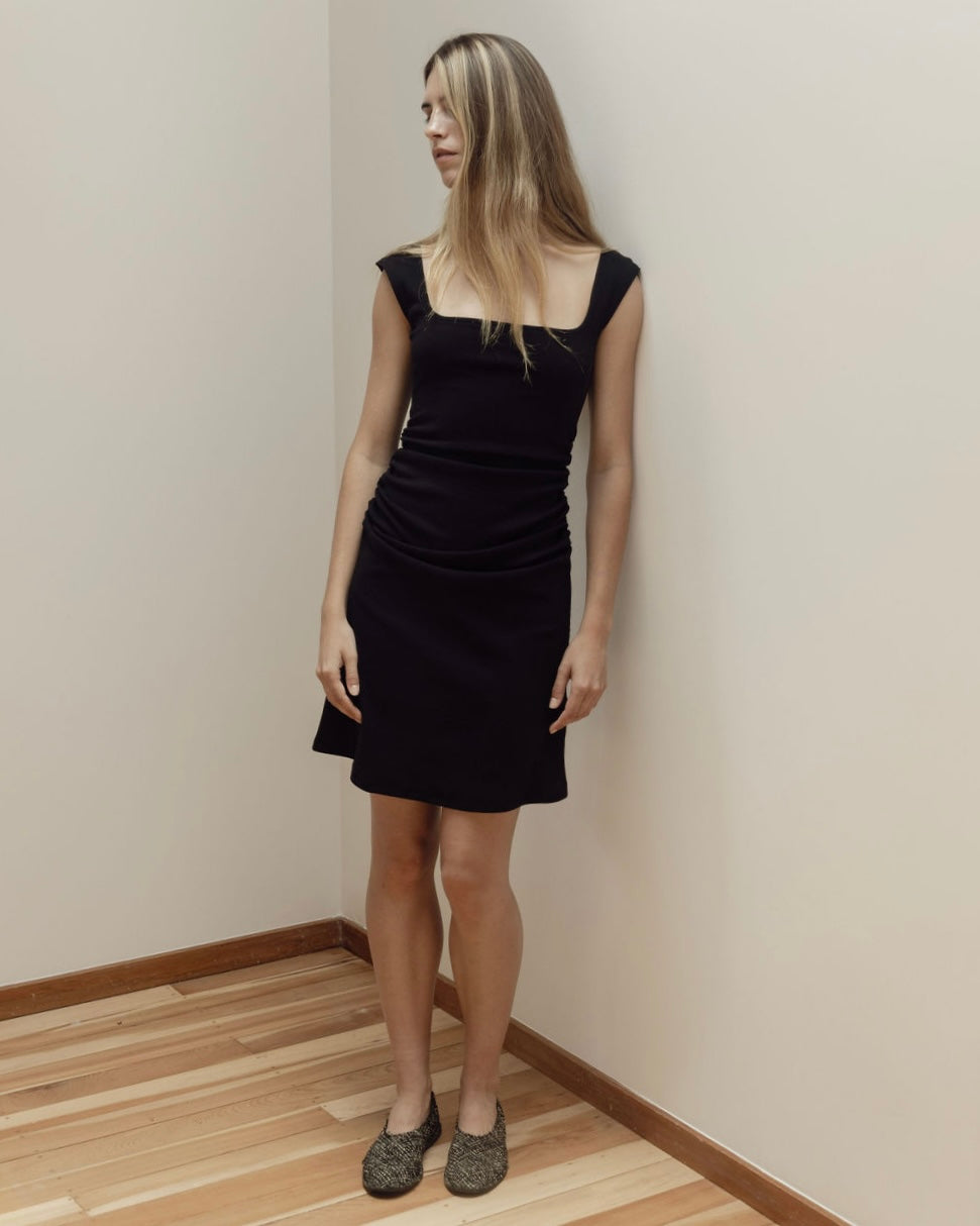 Featuring a low square neckline with a scoop back and wider straps, Naia is designed to feel supportive and easy to wear. Subtle ruching through the sides, with a mini length that sits comfortably above the knee.