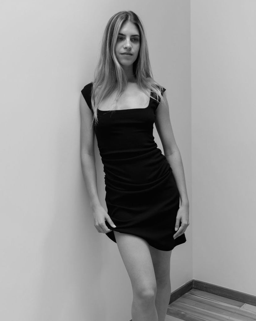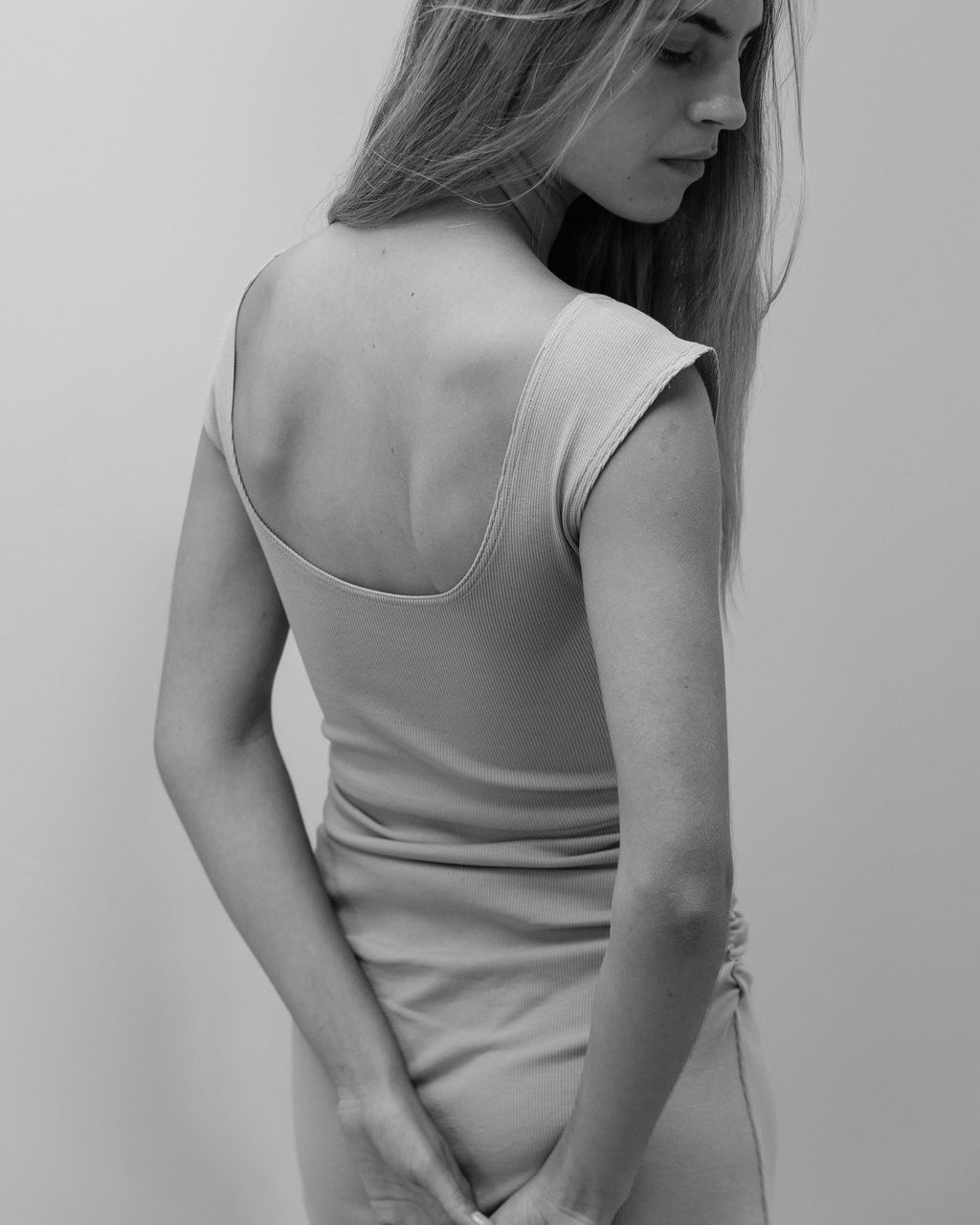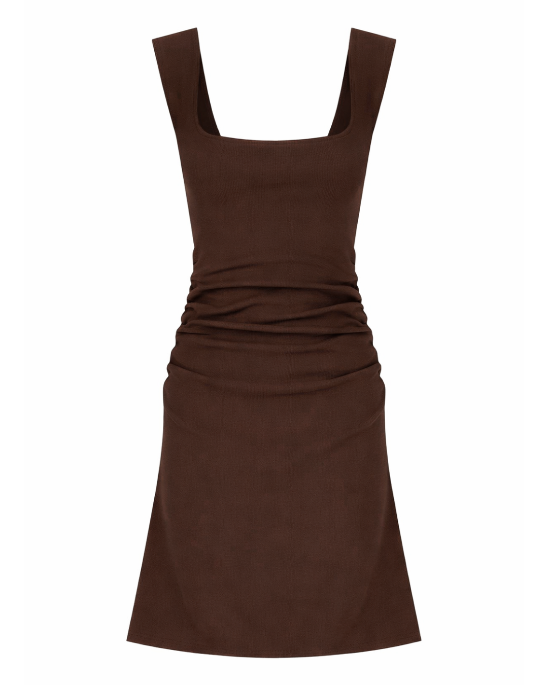 Featuring a low square neckline with a scoop back and wider straps, Naia is designed to feel supportive and easy to wear. Subtle ruching through the sides, with a mini length that sits comfortably above the knee.