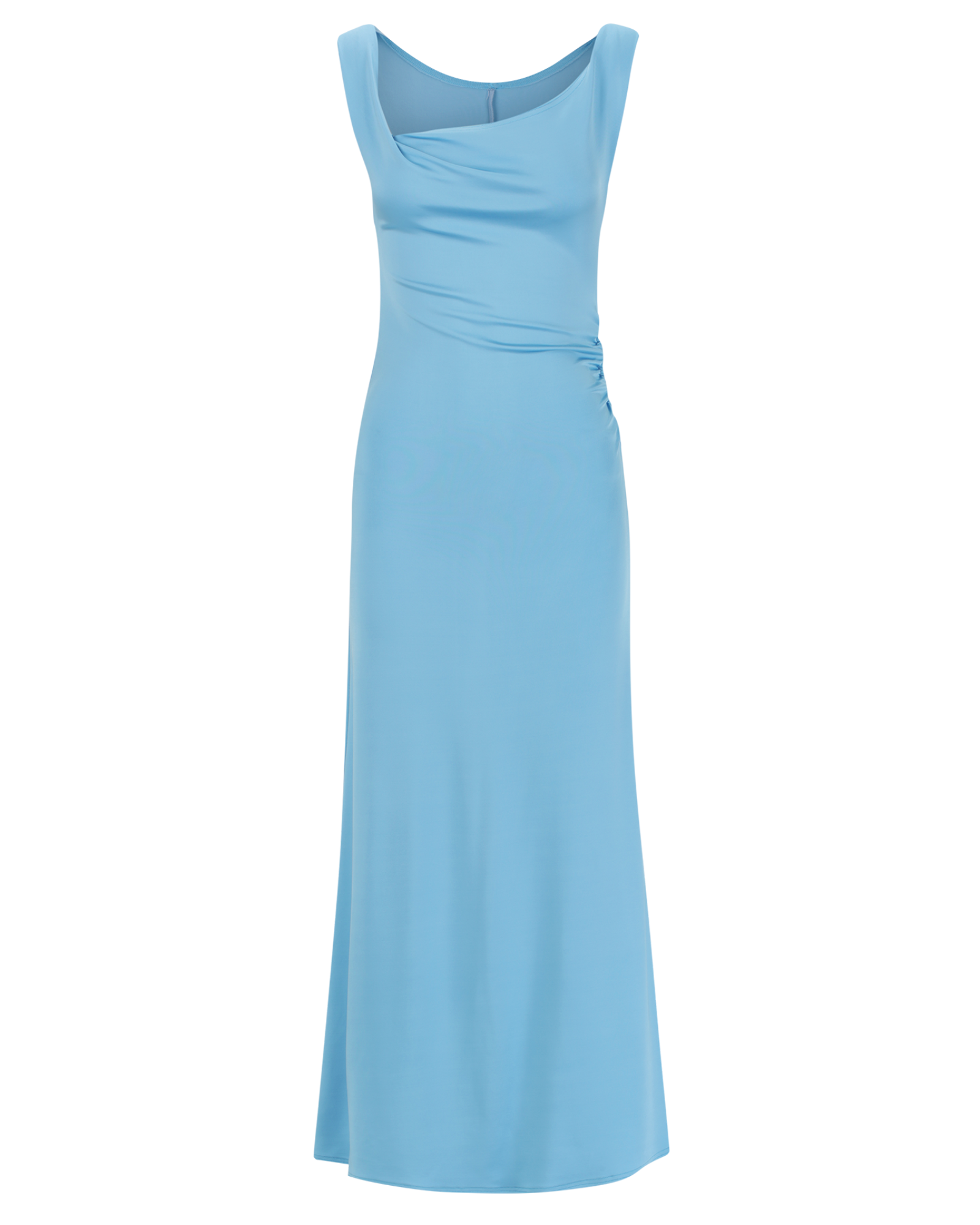 Elasticated ruching through one side of the body creates a flattering gather and soft shape, allowing the fabric to move comfortably while enhancing the asymmetric design.