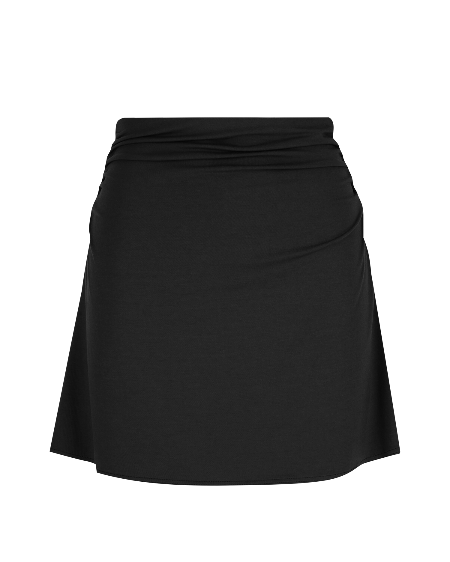 Olympia Mini-skirt; the newest addition to our wardrobe staples. A soft jersey skirt featuring elasticised waist, ruching down the sides before swinging out into a flattering a-line. Length is Mini.