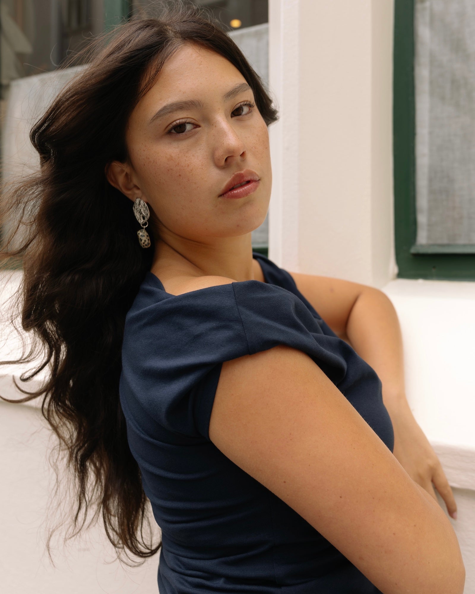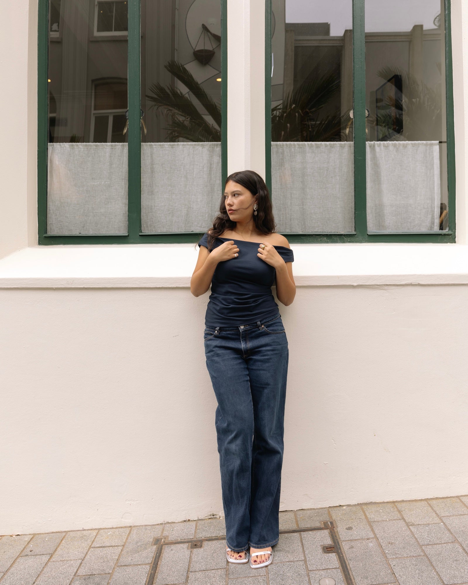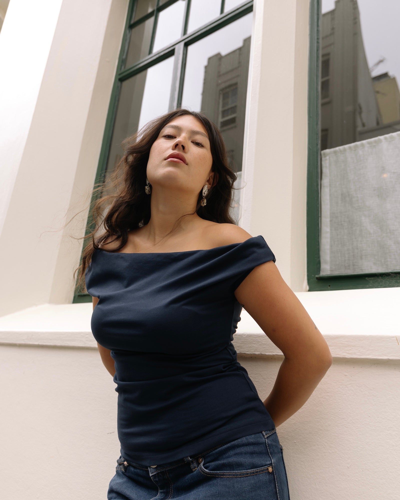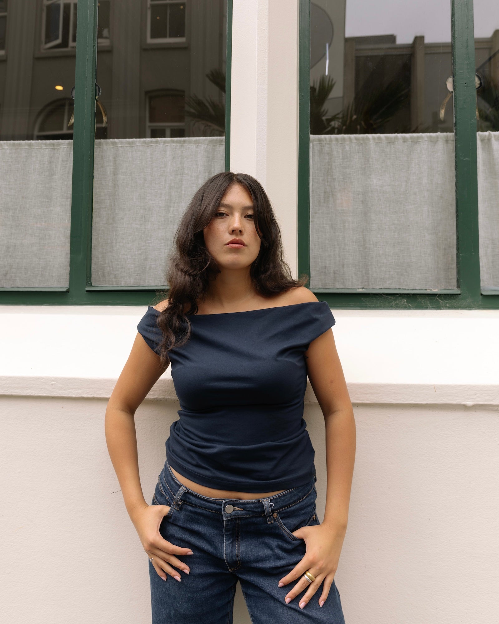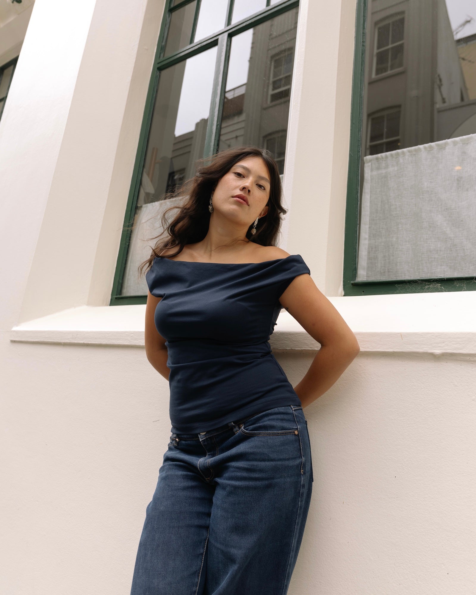 Our Vera Tee features off the shoulder neckline to show off your décolletage, perfect paired with jeans or a simple pant and skirt. Fabric is a beautiful, soft organic cotton and spandex jersey.
