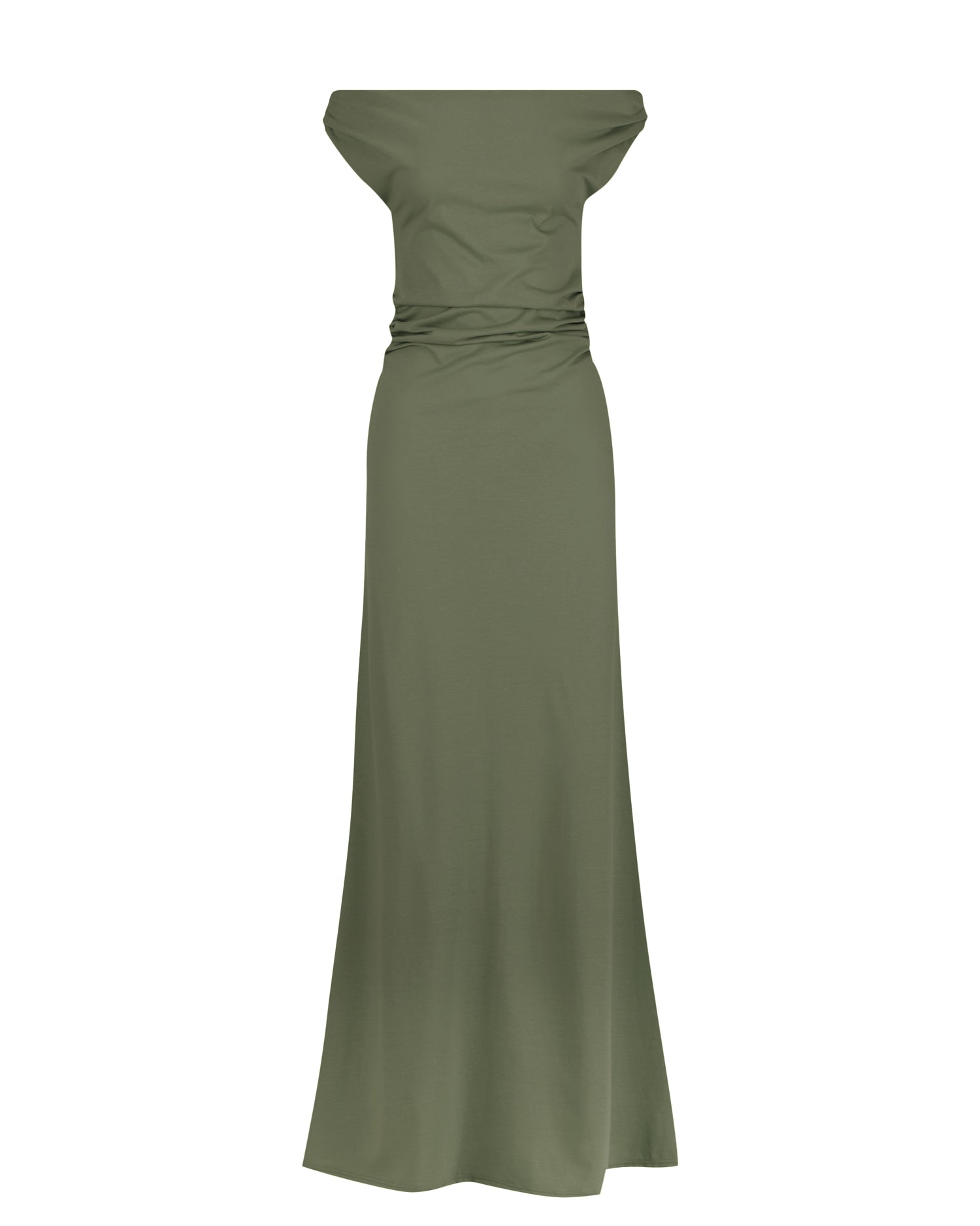 Vera to the Floor. A timeless black dress, featuring off the shoulder neckline to show off your décolletage. This dress features elastic at waist to create a gathered effect, the skirt goes into an a-line shape for an overall flattering aesthetic. Length is to the floor. Fabric is a soft pure cotton jersey with a slight sateen finish and has some stretch for extra ease and comfort. Can be worn with sandals for more casual occasions or dressed up with a pair of heels and jewellery.