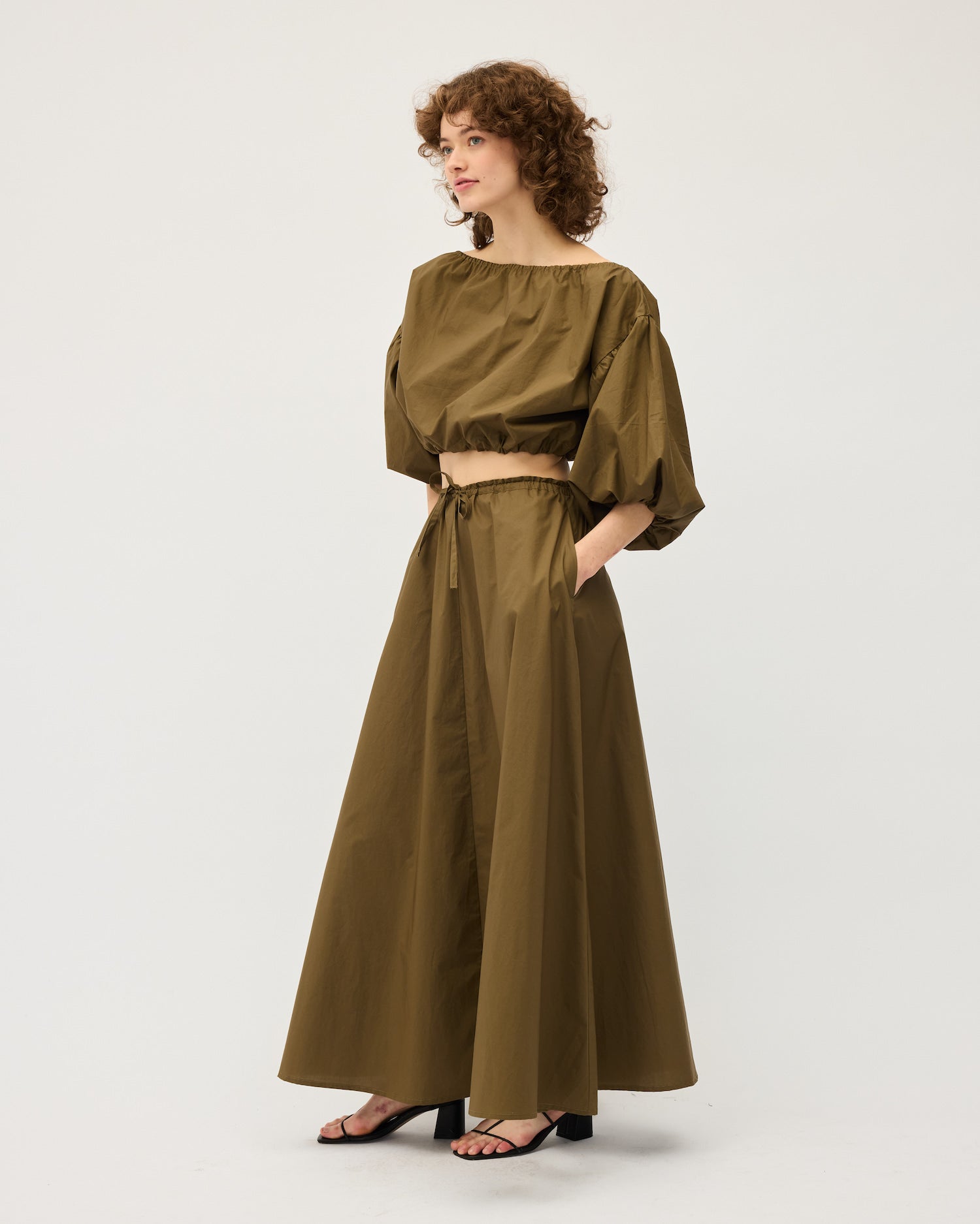 Our Zelda skirt features a drawstring and elasticised waist in a mid weight cotton. Full a-line shape, sitting just above the ankles. A comfortable and easy skirt to wear for years to come.