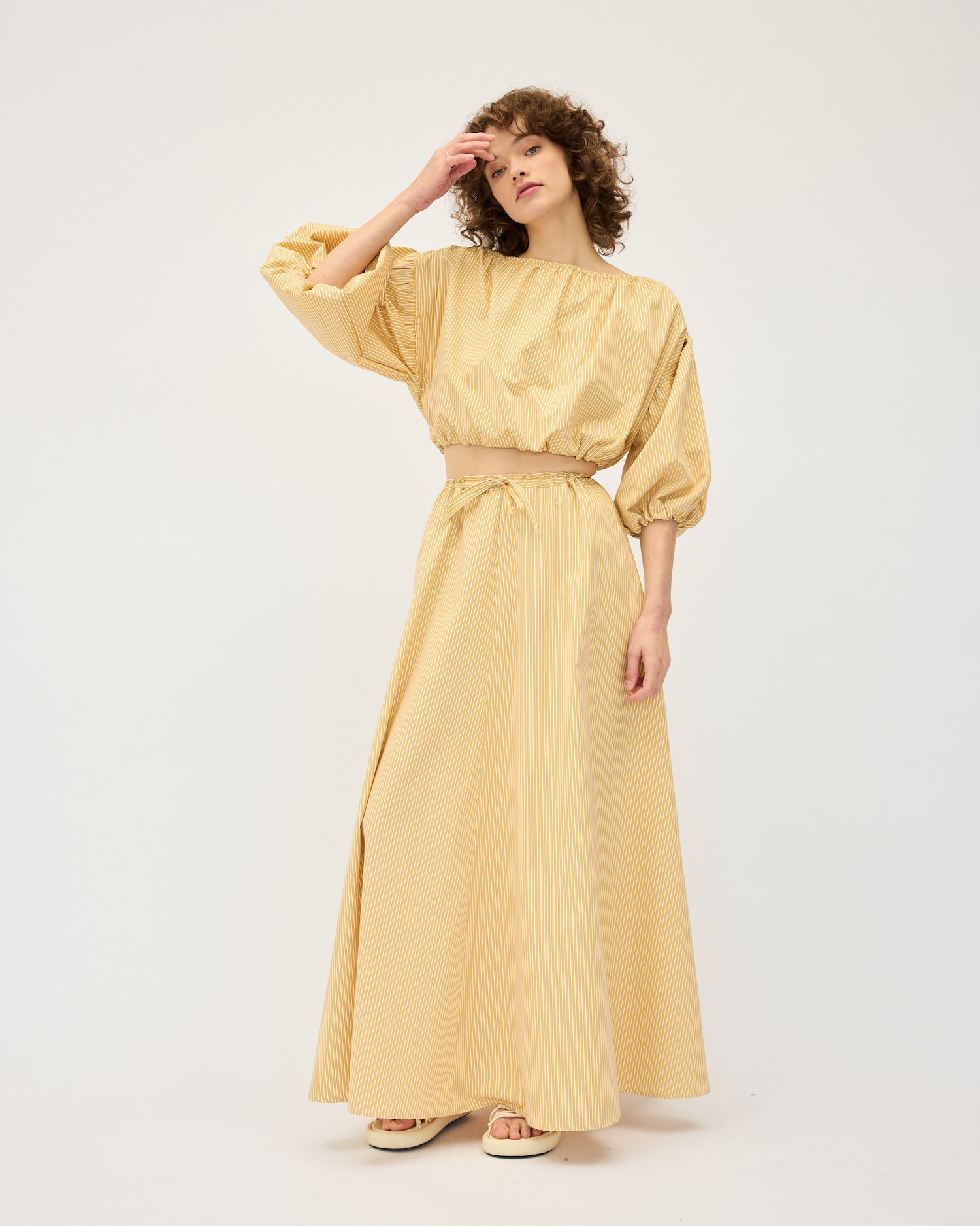 Our Zelda skirt features a drawstring and elasticised waist in a mid weight cotton. Full a-line shape, sitting just above the ankles. A comfortable and easy skirt to wear for years to come.