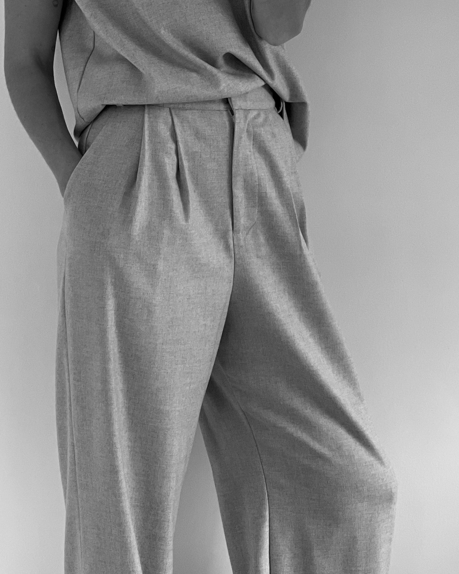 Our Zoe pant has become our loose tailored pant staple. Now available in soft wool suiting with belt loops.